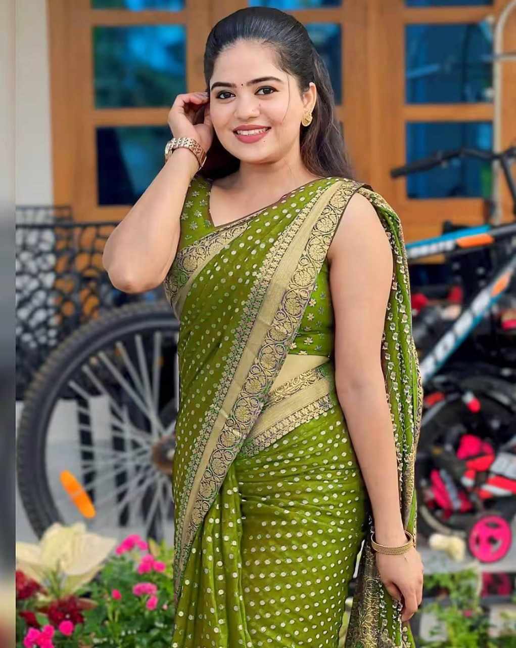 | Name : | MF 1830 GREEN SOFT LICHI SILK SAREE |