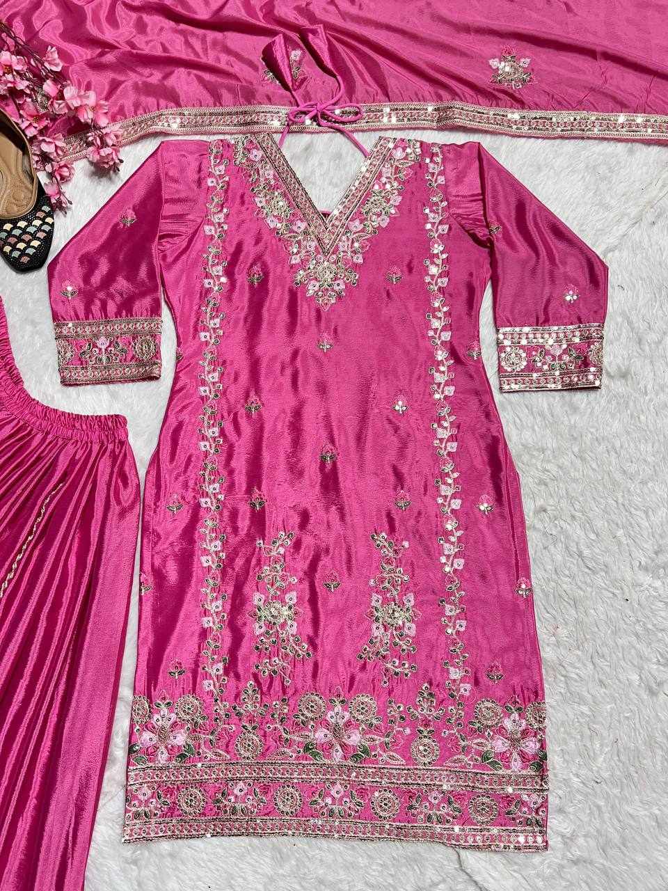 Plazzo Fabric: Pure Heavy Chinnon Silk with Heavy Embroidery Coding Sequence Work (Fully Stitched)