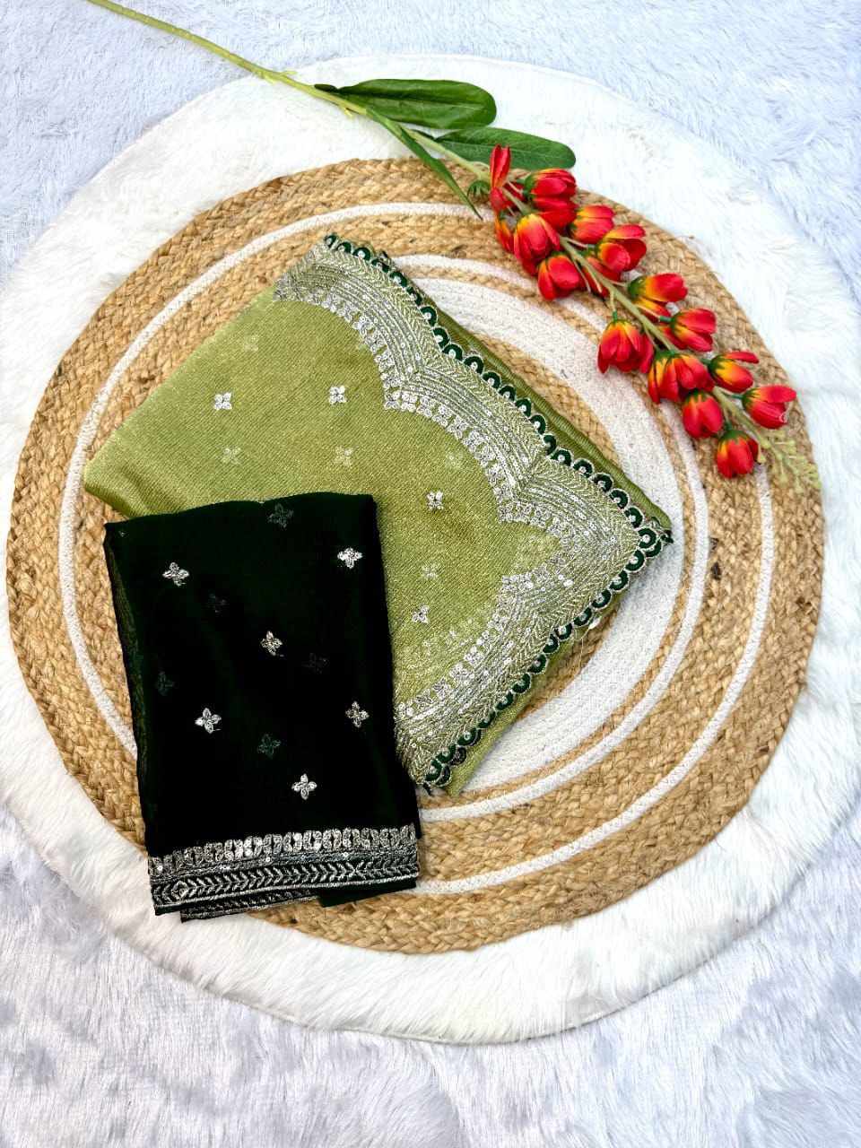 | Name : | RC Sitara Green Thread Embroidery Beautiful Saree |