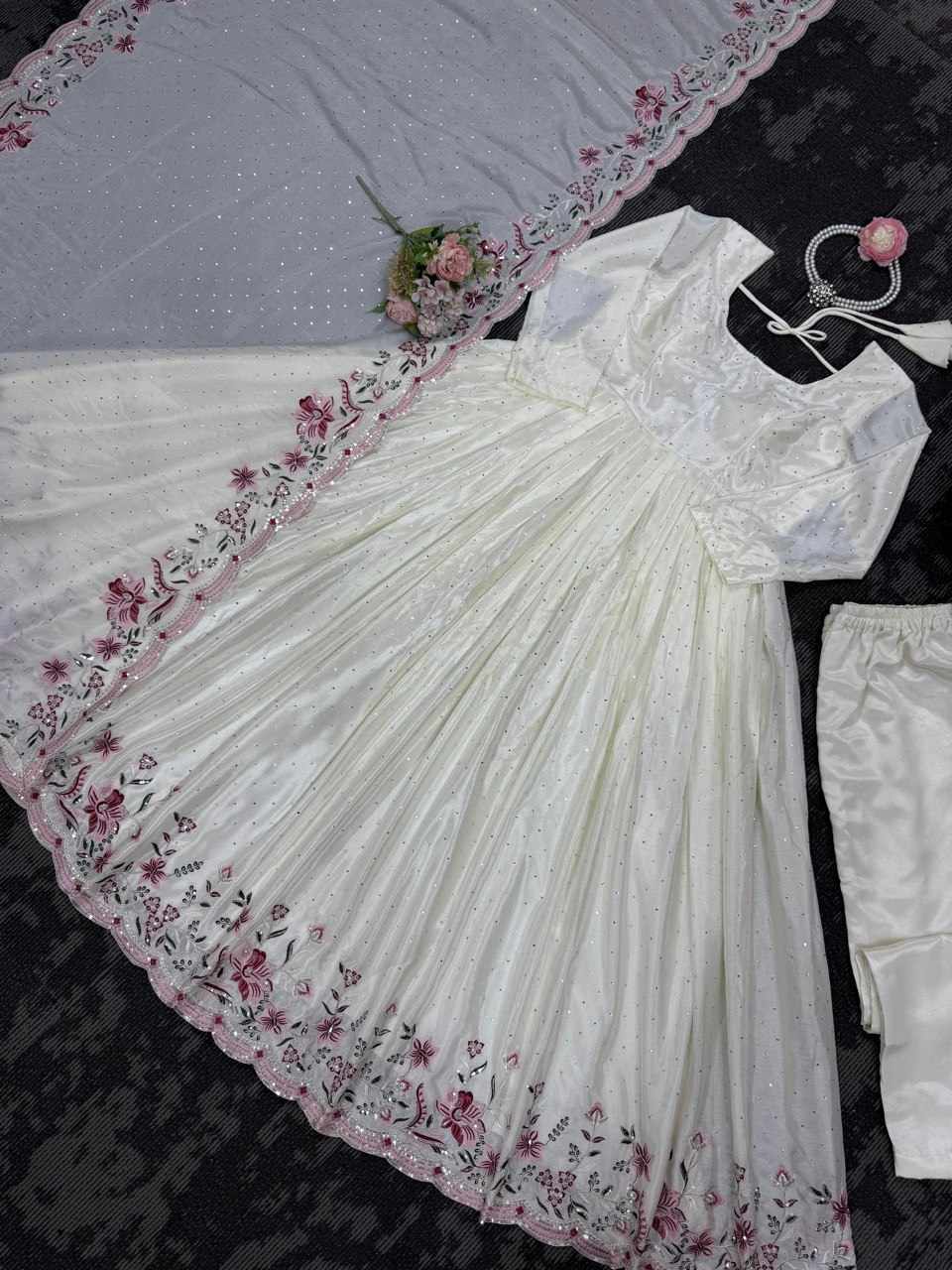 | Name : | RTC 5873 Chinon silk thread with Sequnce Off White Readymade Dress |