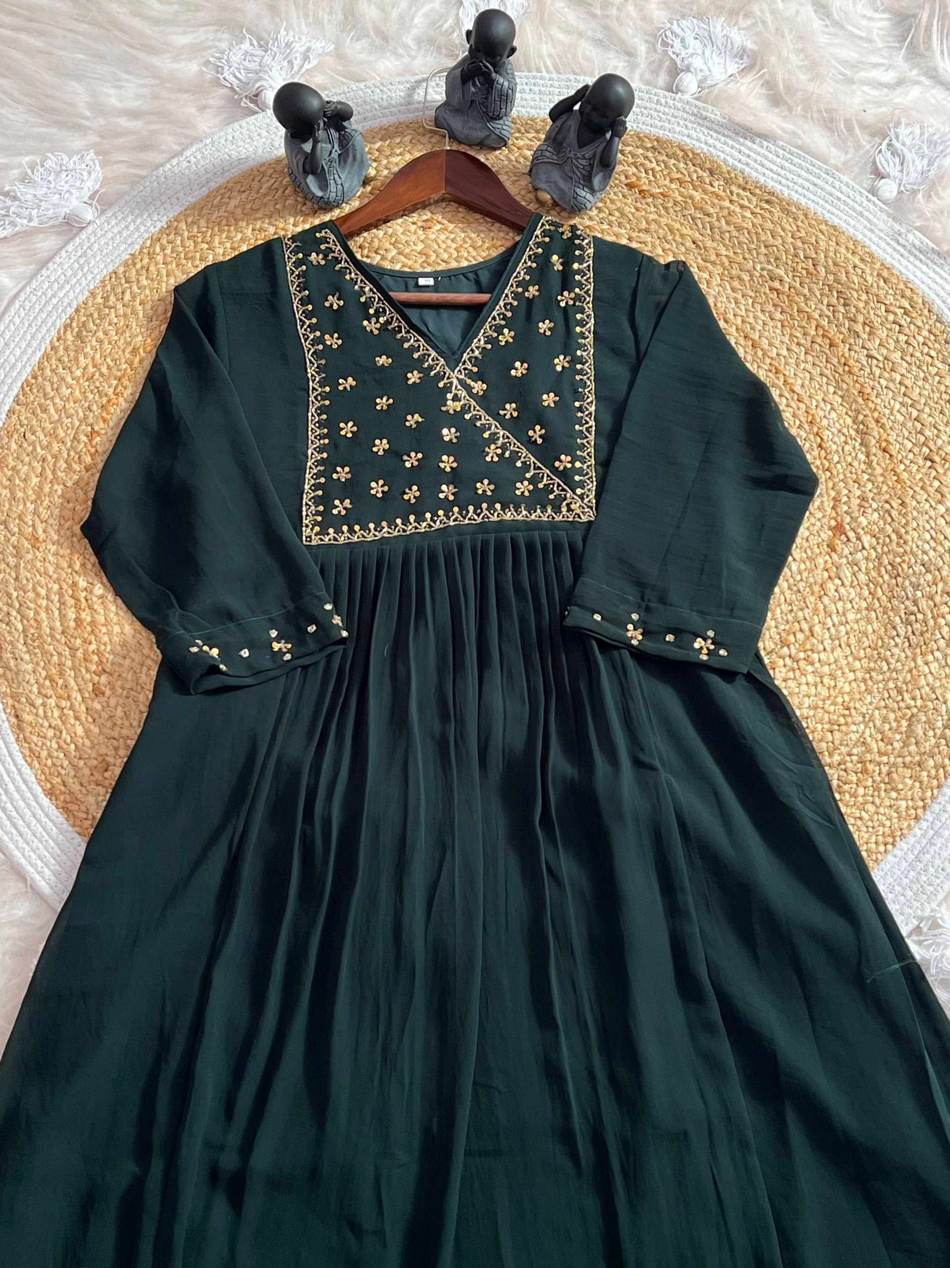 WM12 GREEN BLOOMING GEORGETTE BEAUTIFUL HANDWORK KURTI